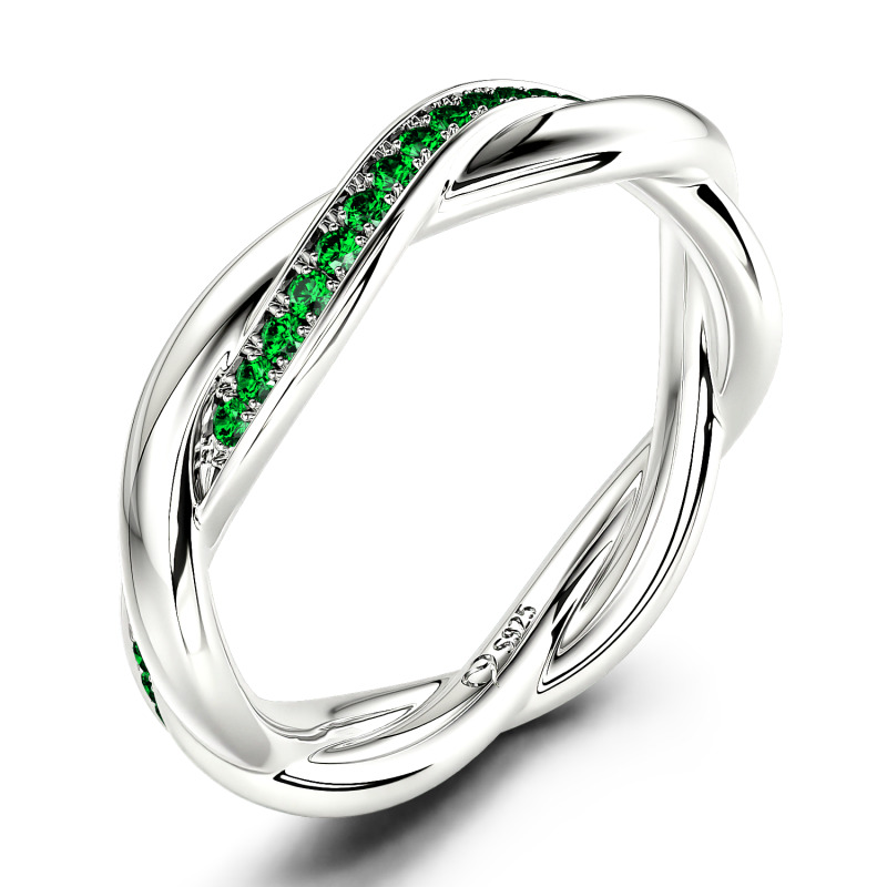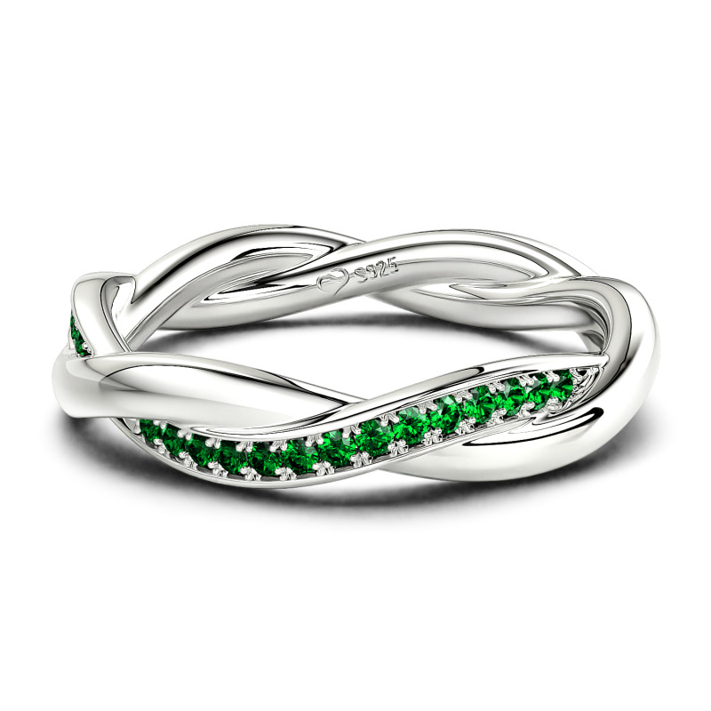 A twisted wedding ring that has two bands intertwined in a vine-like fashion. This beautiful and delicate wedding ring is formed by two intertwining bands, one of micropave set stones and one of solid 10K/14K/18K Gold Platinum for an elegant statement.