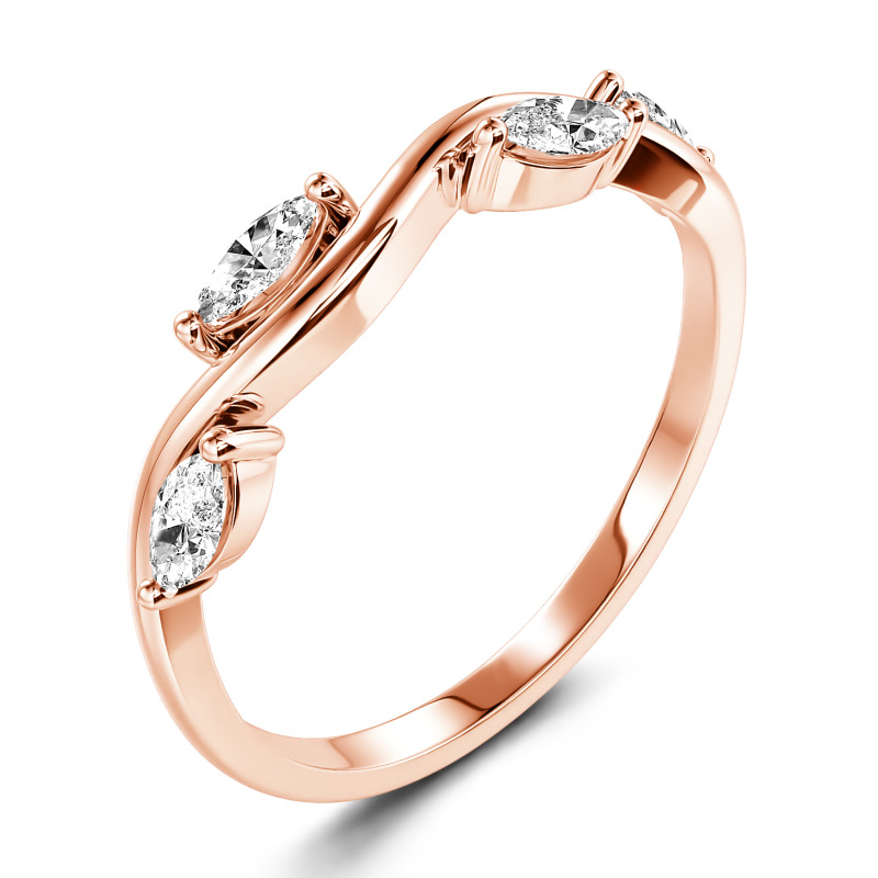 This whimsical ring is wonderfully designed into a branch and leaf shape with the dainty curve outlining four marquise-cut glistening stones. The shining moissanite leaves nestle quietly and lively on the slender branch. Graceful, low-pitched, and timeless, the lovely feminine ring is ideal for an anniversary gift or everyday accessory. She will fall in love with the simple but unique style at the first sight.