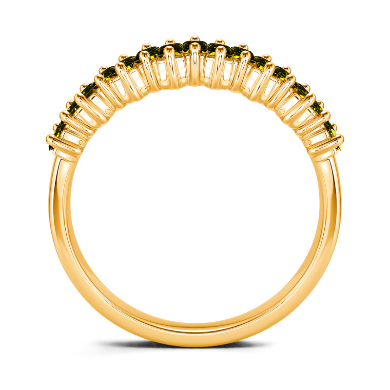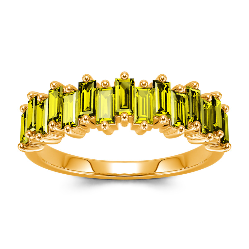 Promise to love, honor and cherish her with this charming moissanite wedding band. An alternating wave of emerald-cut stones dazzle along one third of the band for a modern and lustrous look. Perfect for all-day wear, the inside of the shank is rounded for comfort. On your wedding day or wedding anniversary, present her with a band that represents an eternity of love.