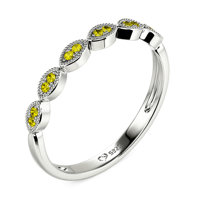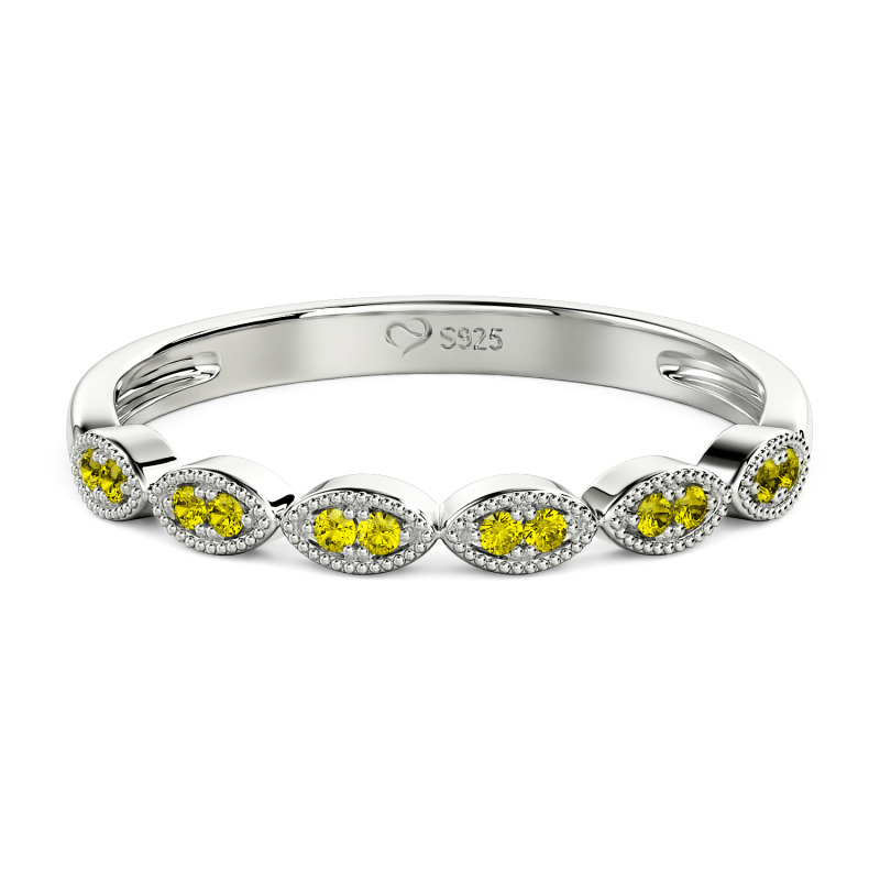 Honor her on your anniversary with this eye-catching moissanite band. This slender design sparkles with twelve shimmering stones aligned in leaf-shaped frames along the chic style. A thoughtful gift to celebrate the special day, this anniversary band captivates with twelve shimmering stones and a bright polished shine. Give her a surprise with this little lovely piece!