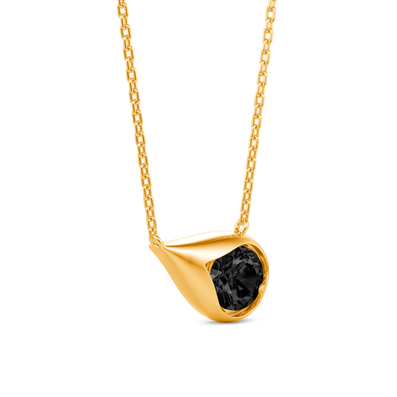 This Jeulia minimalist custom teardrop necklace embodies timeless elegance through minimalist aesthetics. The teardrop-shaped pendant features geometric lines, with a round-cut center stone set at its core. The stone's pure brilliance harmoniously balances with the pendant's sleek silhouette. The edges of the pendant are subtly curved, allowing it to gently sway with movement and reflect a dynamic play of light. Full customization is available: metal color and stone color. “Simplicity is the most enduring expression of elegance.”