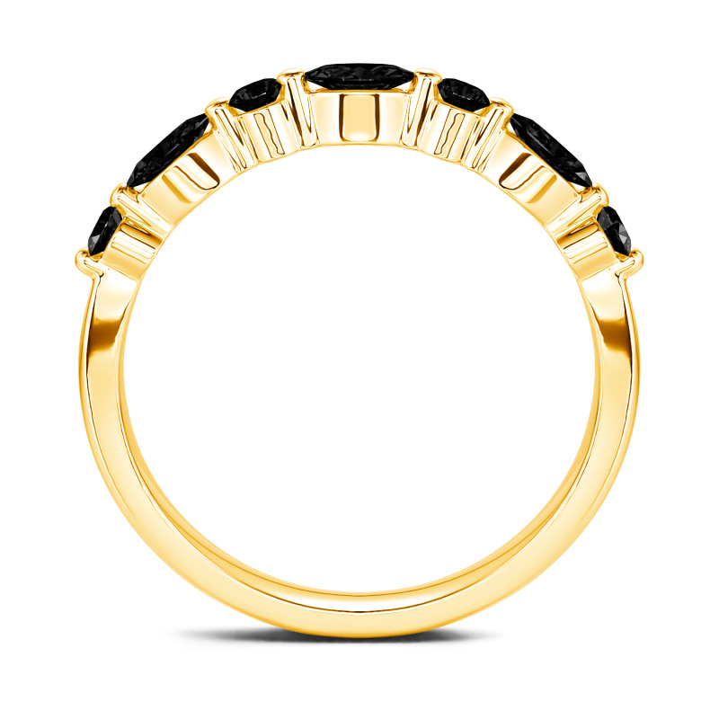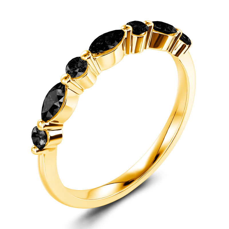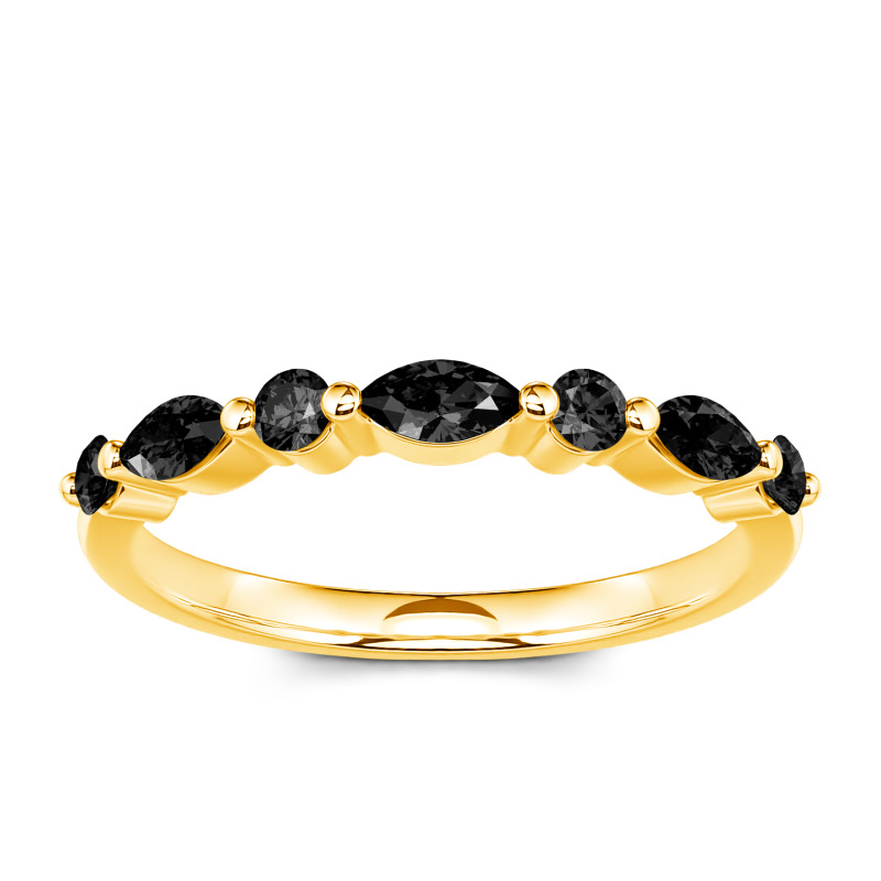 The lustrous moissanite stones are presented in an alternating fashion, set within marquise and round frames to shine gorgeously with the perfectly polished gold band. Vintage-inspired, a sparkling row of stones combines with the gleaming gold - a simple design that she can wear every day. Bring her a surprise on a special day. This gracious band is a thoughtful gift to commemorate your anniversary and memorialize your years spent together.