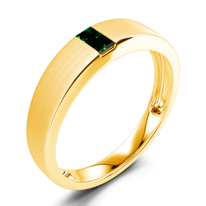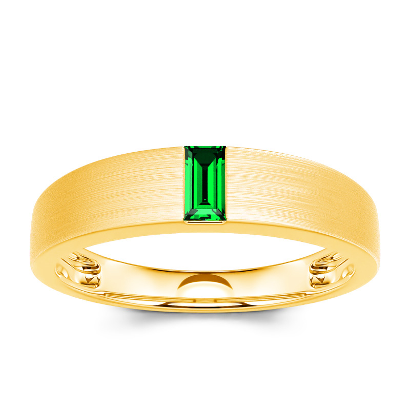 Use this charming band to celebrate your loving commitment and seal your vows in style. With the liberal brushed finish, the dashing men’s band features an emerald-cut shimmering stone encapsulated in the refined band. Radiant with shining solitaire, this comfort-fit wedding band is a symbol of faithful and everlasting love, and its generous design never succumbs to trends.