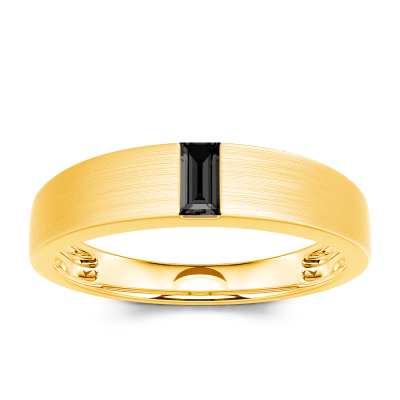 Use this charming band to celebrate your loving commitment and seal your vows in style. With the liberal brushed finish, the dashing men’s band features an emerald-cut shimmering stone encapsulated in the refined band. Radiant with shining solitaire, this comfort-fit wedding band is a symbol of faithful and everlasting love, and its generous design never succumbs to trends.