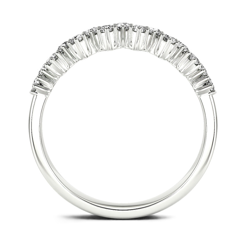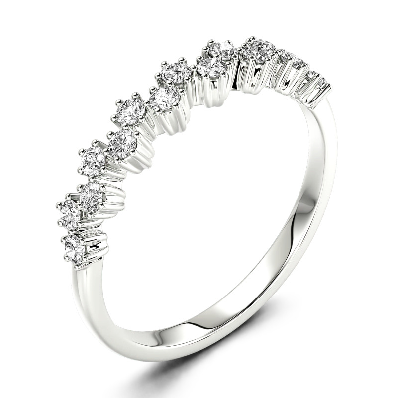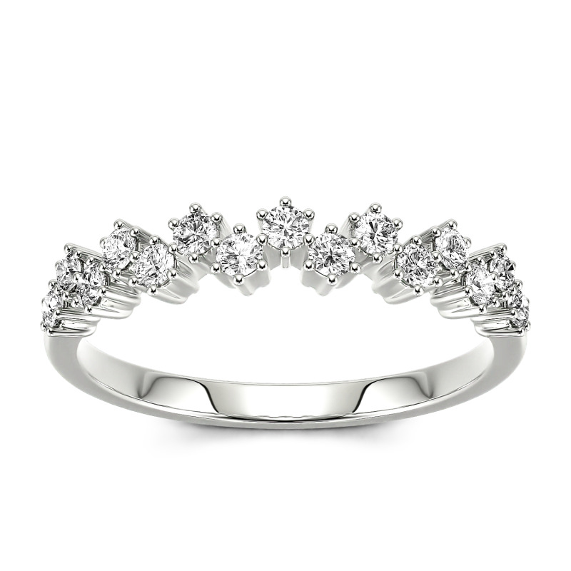 Like your love, this moissanite anniversary band is a classic that never goes out of style. Stunning prong-set stones in a sculptural alternating pattern appear to float above the finger for an effortless, unique look. Its simple style is fit for every lady. You can wear it separately or stack it with other rings. Treat yourself with this piece.