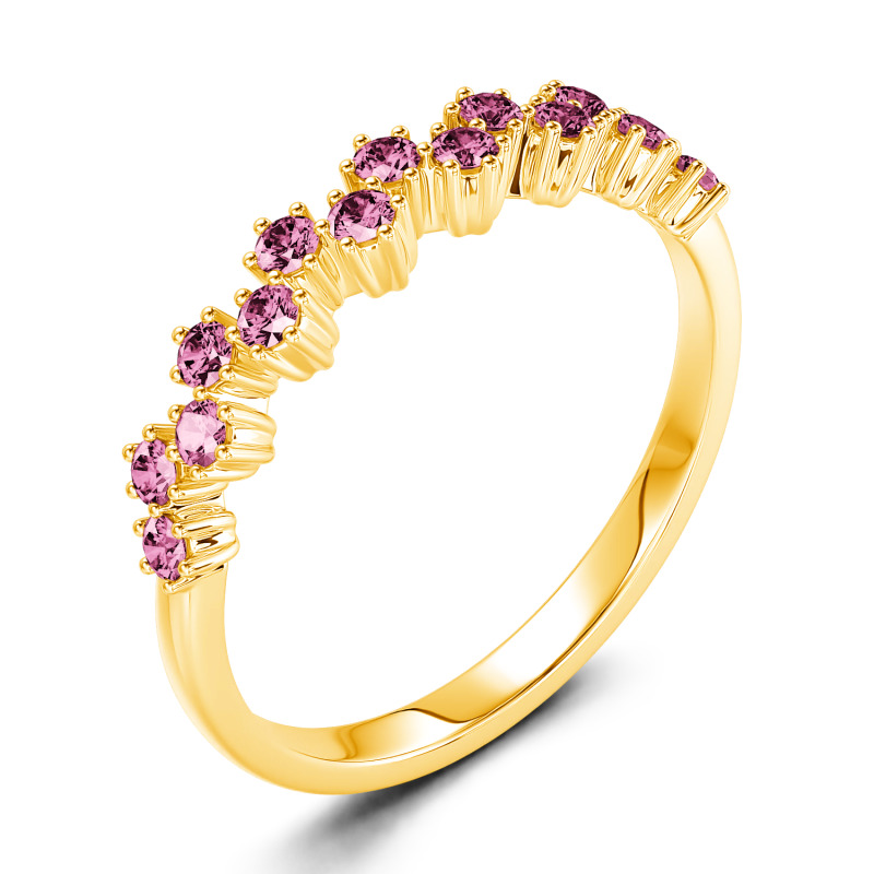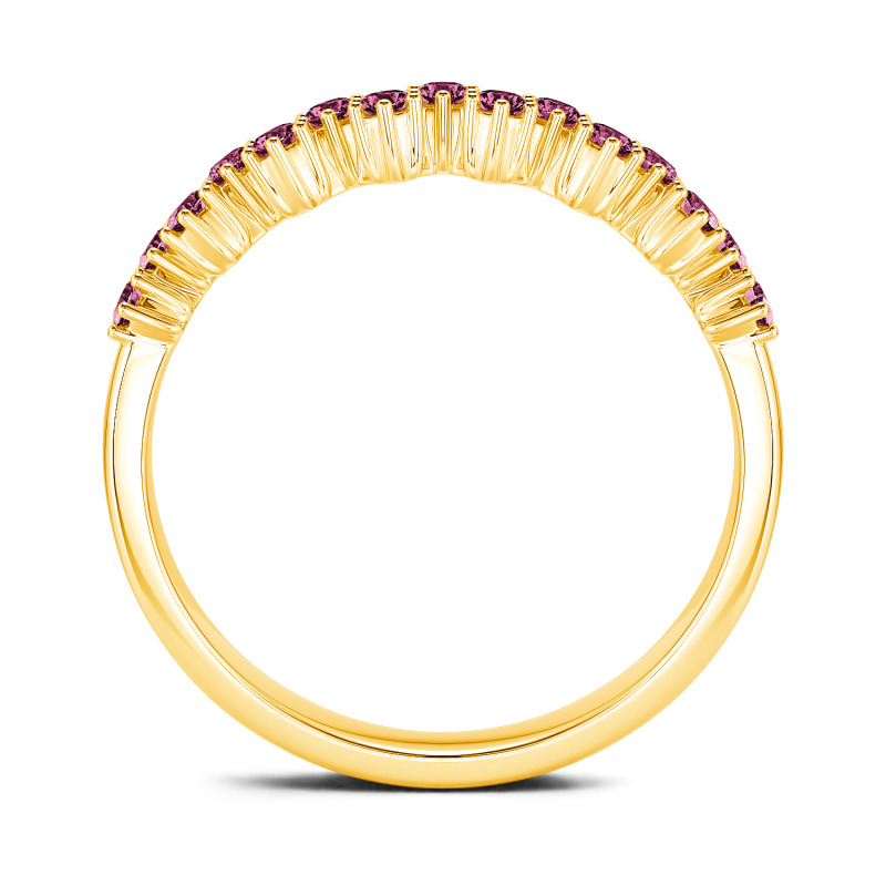 Like your love, this moissanite anniversary band is a classic that never goes out of style. Stunning prong-set stones in a sculptural alternating pattern appear to float above the finger for an effortless, unique look. Its simple style is fit for every lady. You can wear it separately or stack it with other rings. Treat yourself with this piece.