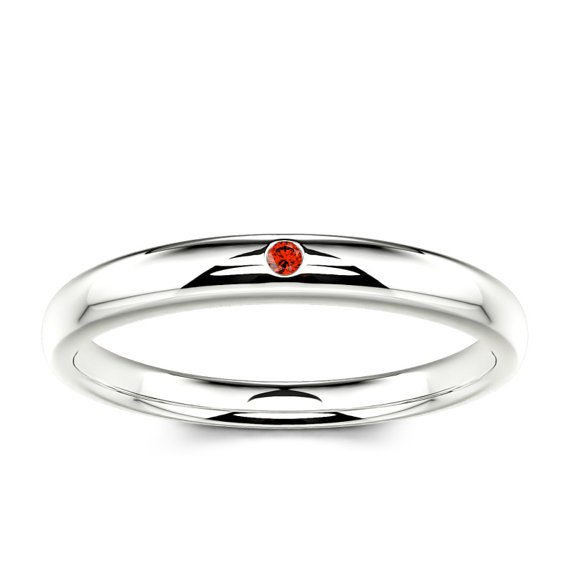 This classic moissanite band is a symbol of enduring love. Timeless and traditional, it features an alluring addition of a round-cut stone set into its band. The tone imbues this piece with a contemporary resonance. Dedicatedly created, the ring serves as a visual reminder of a loved one, making a natural choice for a wedding ring.