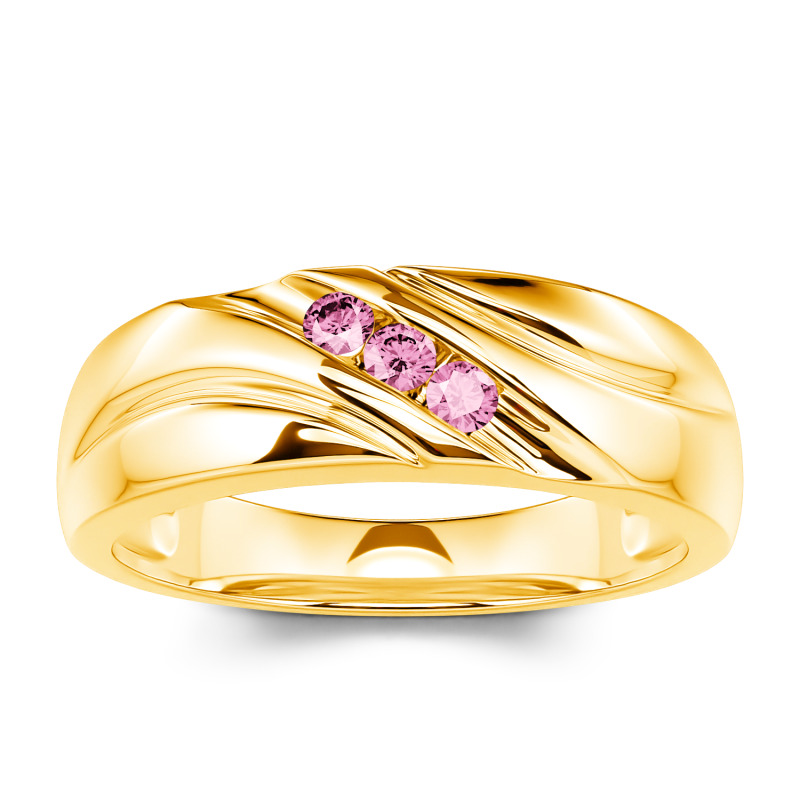 Jeulia 10K/14K/18K Gold Platinum Round Cut Three Stone Men's Band