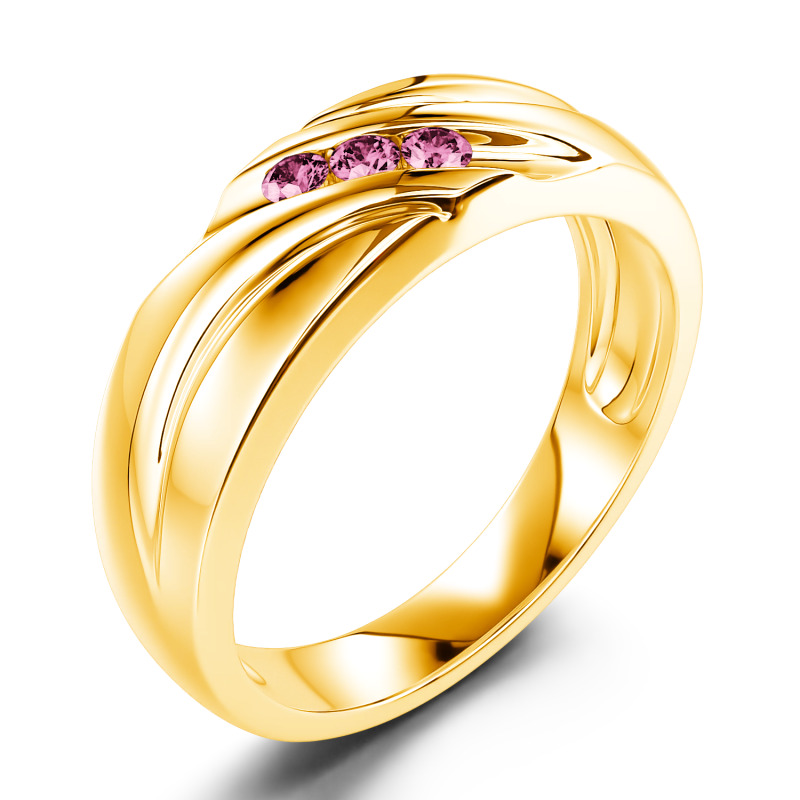 Jeulia 10K/14K/18K Gold Platinum Round Cut Three Stone Men's Band