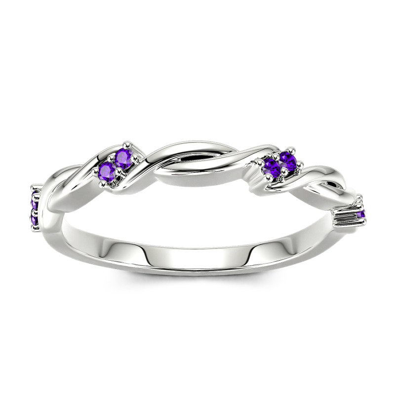 A look she'll treasure, this sparkling moissanite twist band marks your latest chapter with style. Ribbons of high polished precious metal appear gracefully woven together and adorned with clusters of sparkling stones in this unique and whimsical ring. Gleaming with your love, this slender wedding band is a true reminder of your everlasting love.