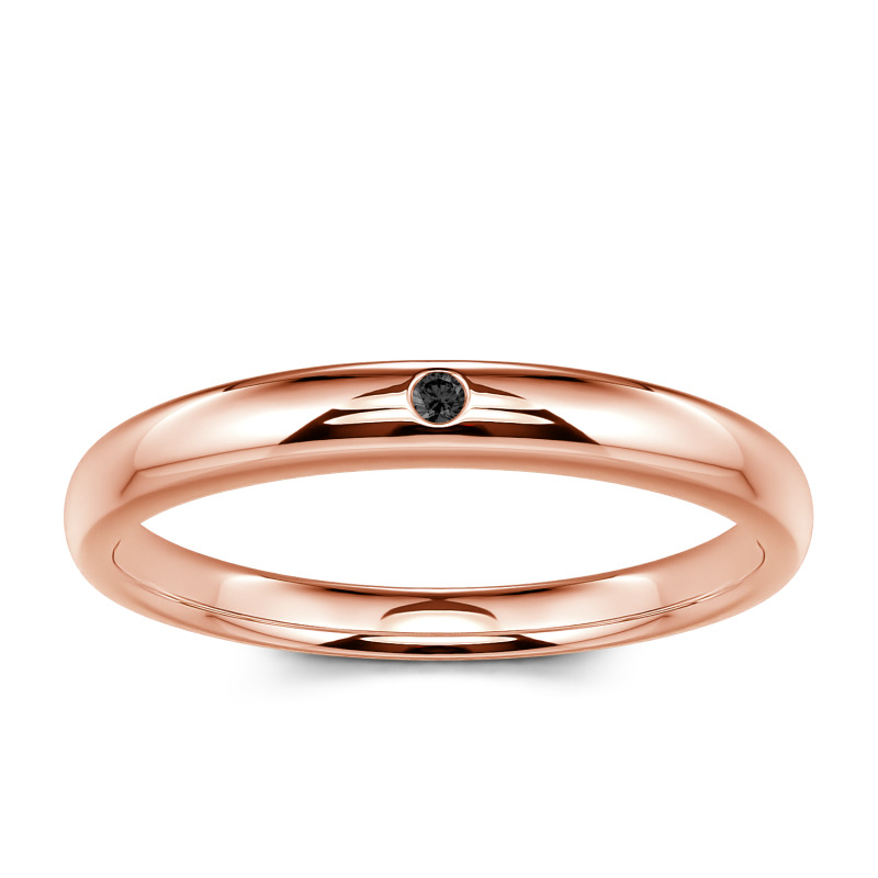 This classic moissanite band is a symbol of enduring love. Timeless and traditional, it features an alluring addition of a round-cut stone set into its band. The tone imbues this piece with a contemporary resonance. Dedicatedly created, the ring serves as a visual reminder of a loved one, making a natural choice for a wedding ring.