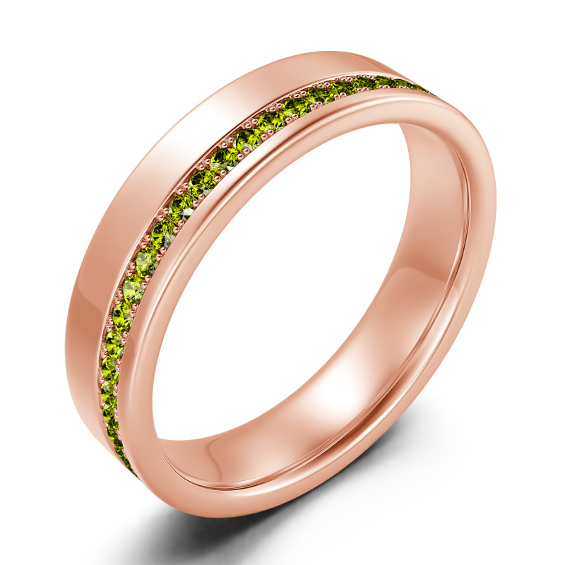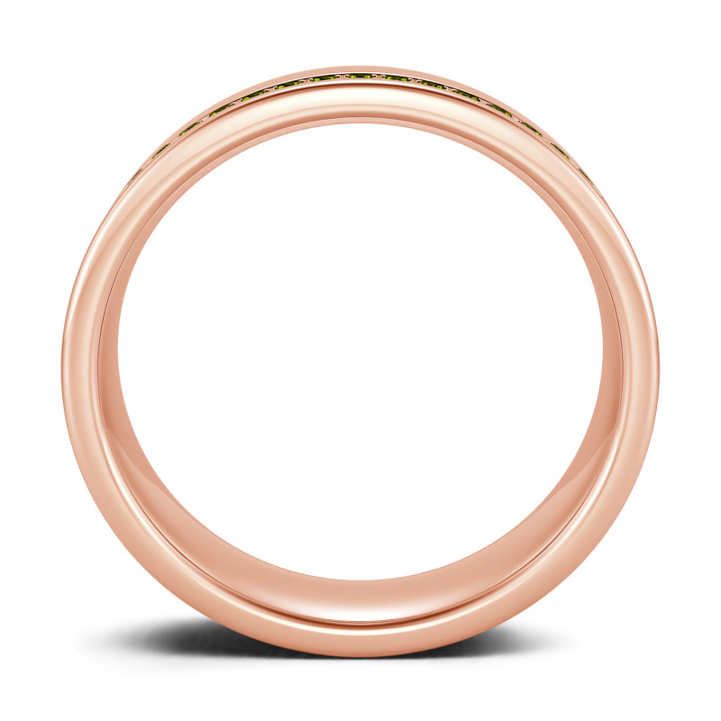 On your anniversary or wedding day, honor the man you love with a ring worthy of his affections. This unique design features a ribbon of petite channel-set stones along the edge of the modern polished look. Buffed to a brilliant shine, this ring is an elegant symbol of your marriage commitment.