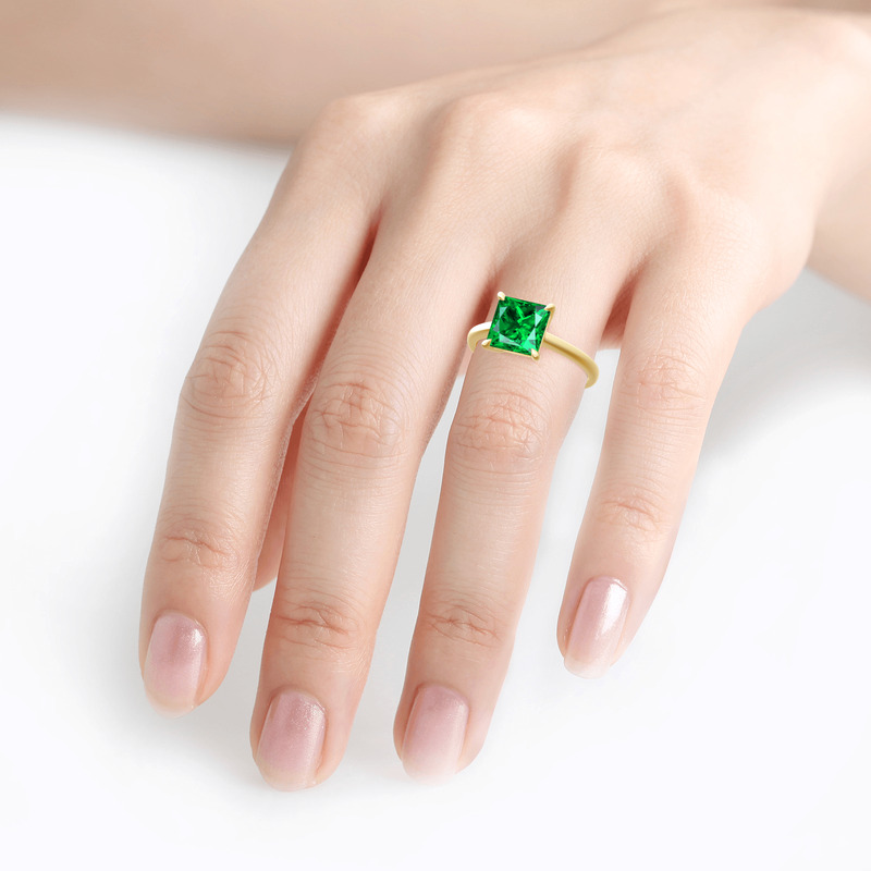 Classic and simple, this engagement ring is a brilliant addition to her wardrobe.This ring showcases a shimmering princess-cut center stone in a traditional four-prong setting.With its classic design and sparkling stone, this ring is a beautiful complement to any attire. Take the ring without any hesitation, and it won't disappoint you!