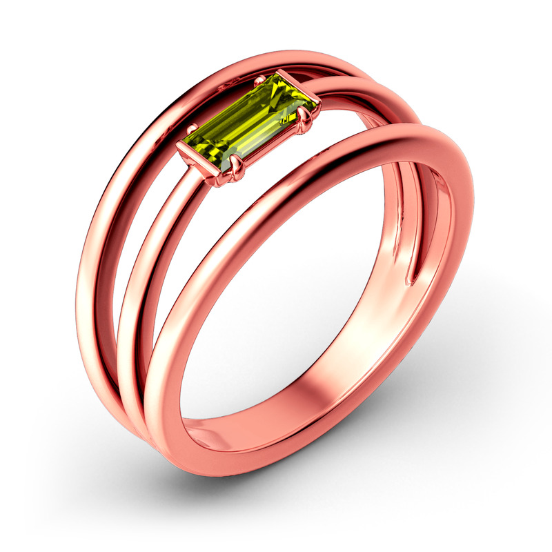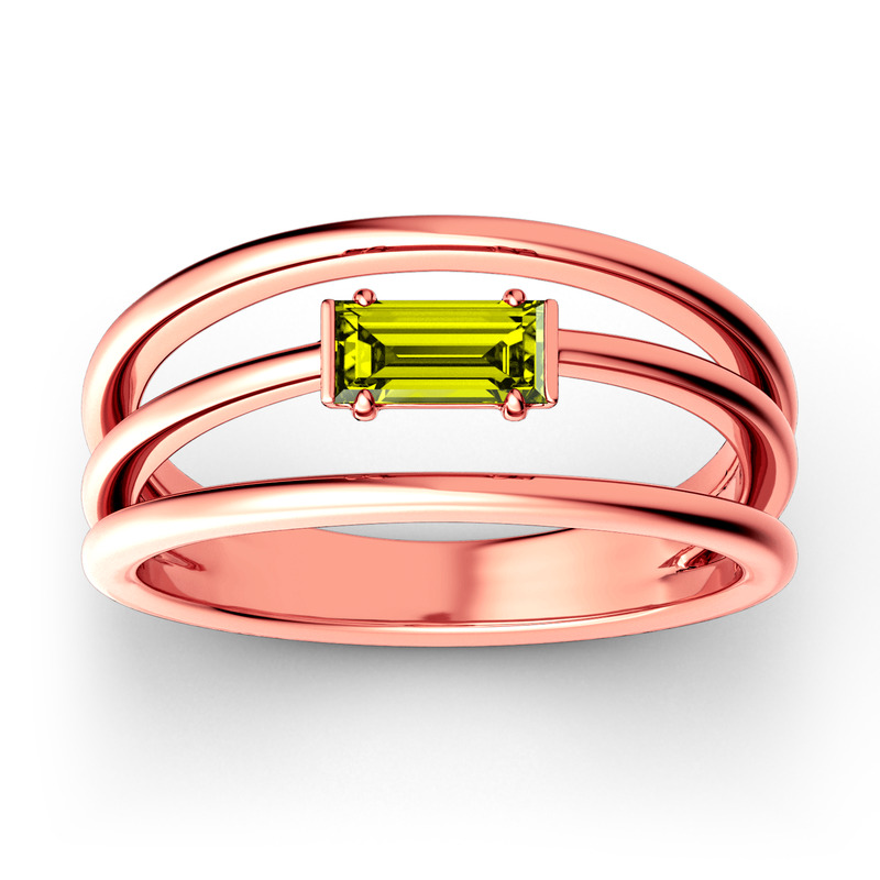 Three delicate bands effortlessly stacked with a stunning emerald cut stone. The stone and metal colors can be customized to your liking. Perfect simply worn alone or as part of a ring stack, you may want to combine this item with something else from our Stackable Collection.