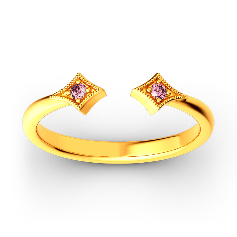 Double the sparkle, this shimmering two-stone open ring shows a really stylish look. Whether you are looking for a daily go to accessory or a perfect piece for the special occasion, this is the ring for you. The stone and metal colors can be customized to your liking. Perfect simply worn alone or as part of a ring stack, you may want to combine this item with something else from our Stackable Collection.