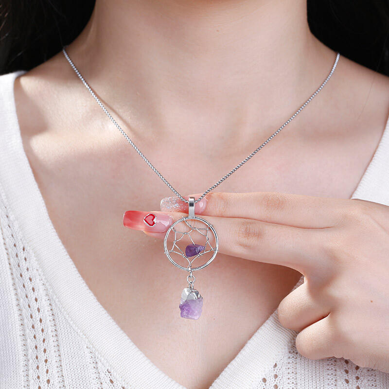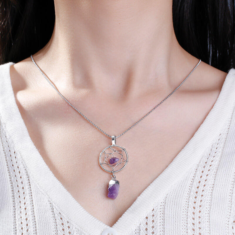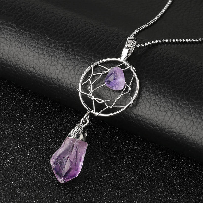 Jeulia "Calm Tenderness" Dream Catcher Irregular Natural Amethyst Necklace