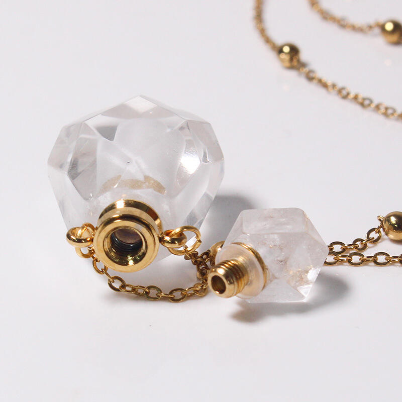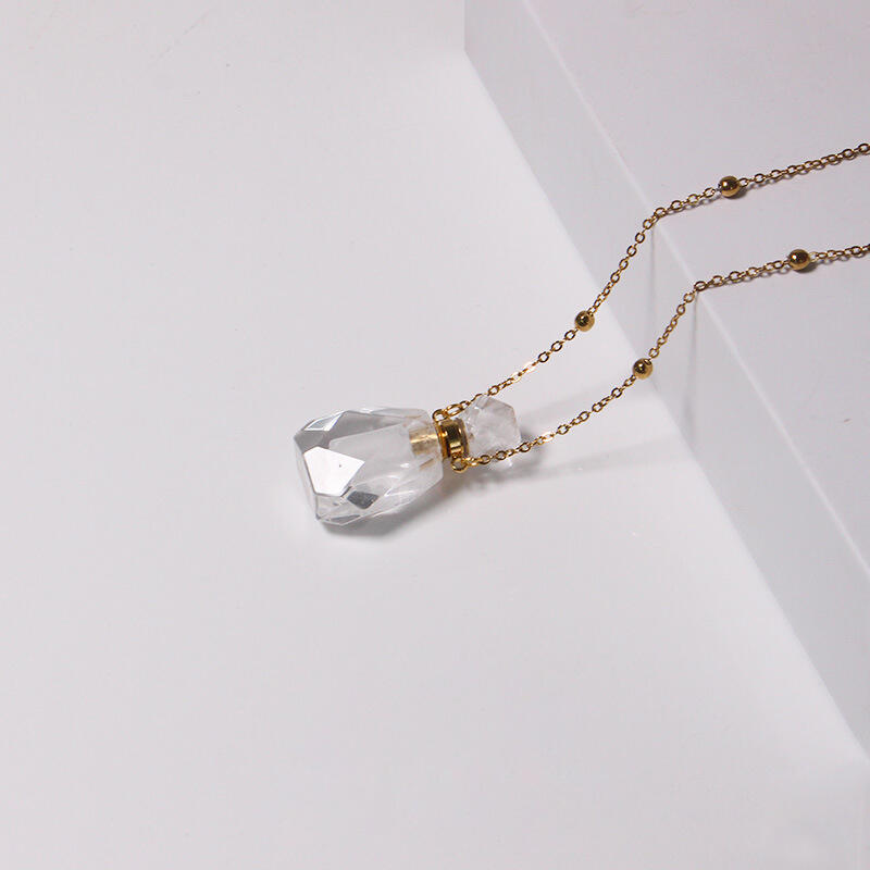 Jeulia "Clarity & Manifestation" Essential Oil Bottle Natural Clear Quartz Necklace (Hollow Bottle)