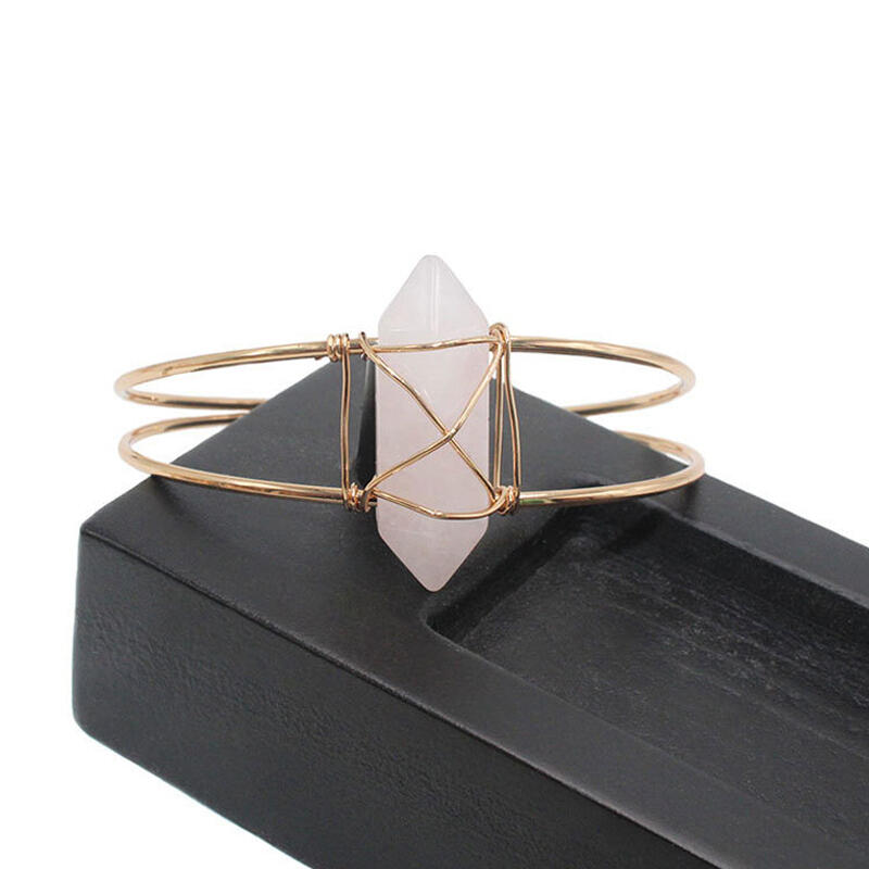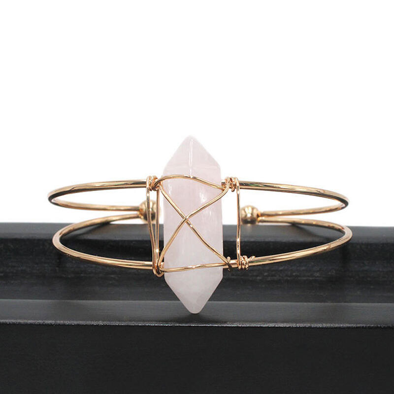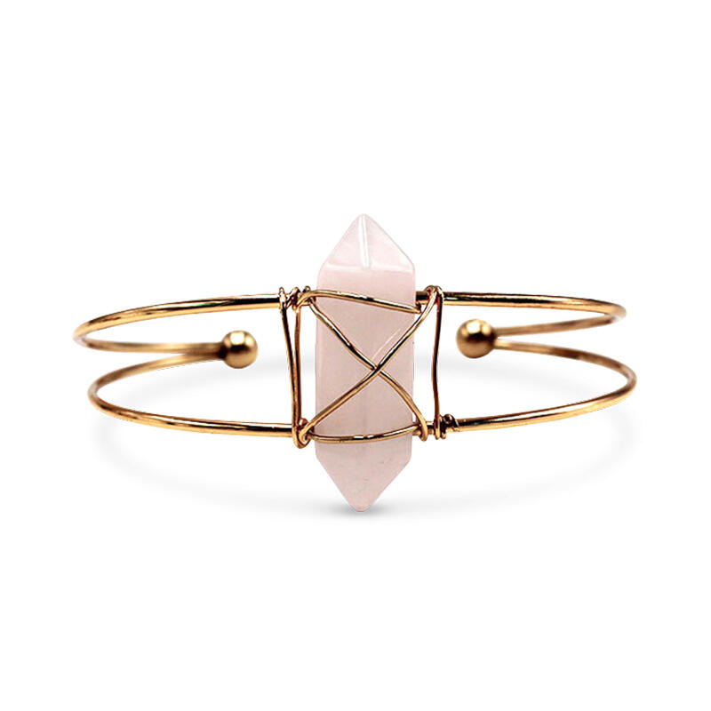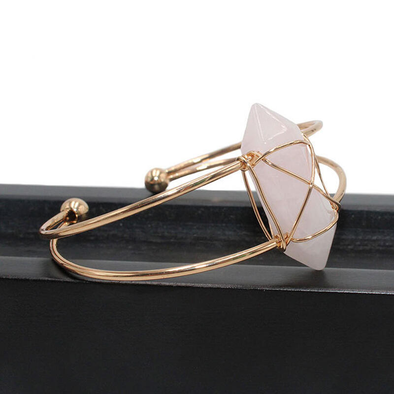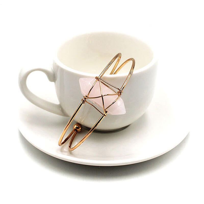 Jeulia "Love & Soulmate" Hexagonal Column Shaped Natural Rose Quartz Bangle Bracelet