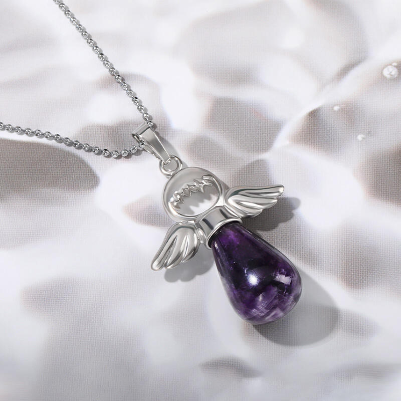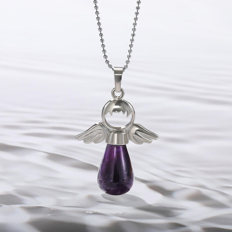 This amethyst angel pendant is a beautiful piece and a great way to feel the positive energy of amethyst at all times. Amethyst is considered very soothing, helping to heal the body and mind. It is also closely associated with spiritual development. Angel pendants like this one help to keep us in contact with our guardian angels; inspire us and protect us from negative influences. With its natural beauty and the power of amethyst infused with angelic energy, this amethyst angel pendant is a wonderful crystal gift for any occasion and a delightful treat for yourself.