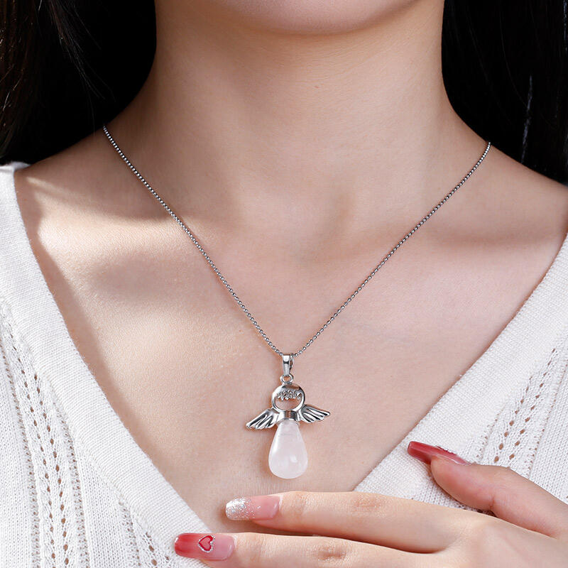 This clear quartz angel pendant is a beautiful piece and a great way to feel the positive energy of clear quartz at all times. Clear quartz is the most versatile and universal crystal. Clear quartz helps to cleanse and clear your mind and any negative energy or emotion you might be experiencing. Angel pendants like this one help to keep us in contact with our guardian angels; inspire us and protect us from negative influences. With its natural beauty and the power of clear quartz infused with angelic energy, this angel pendant is a wonderful crystal gift for any occasion and a delightful treat for yourself.