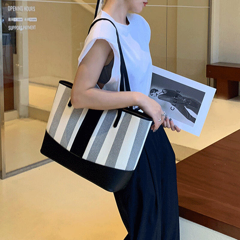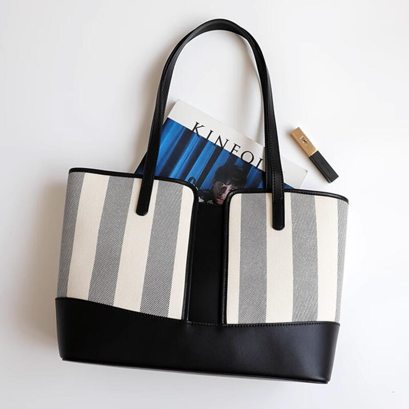 Jeulia Tri-Color Striped Leather Tote Bag Minimalist Large Tote Bag