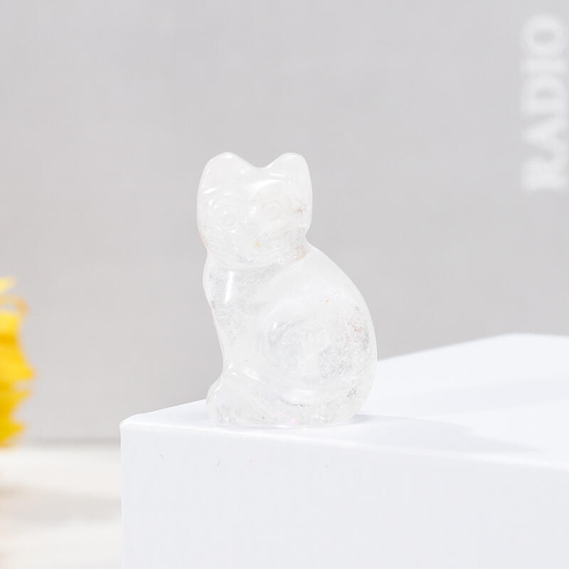 Jeulia "Wealth & Abundance" Natural Clear Quartz Lucky Cat Crystal Carving